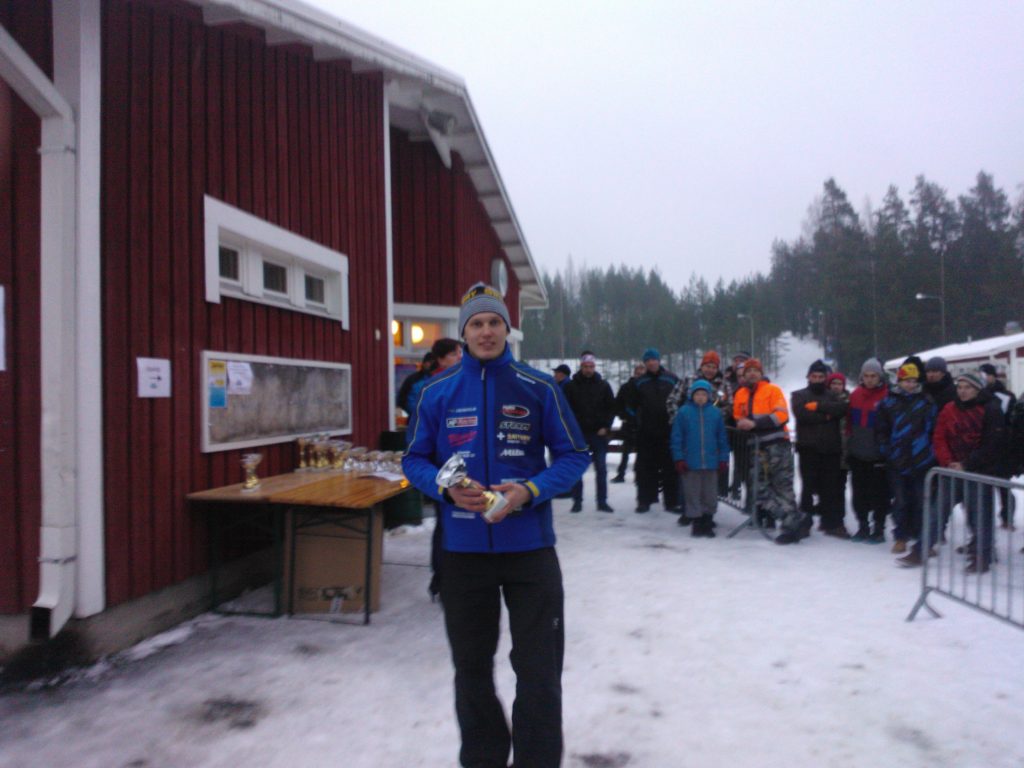 Kierroksella oli 2 erikoiskoetta ja noin 10km metsä- ja peltosiirtymää, jotka ajettiin 3 kertaa päivän aikana. Reitti oli minulle ainakin erittäin haastava, ja tuntuikin etten saanut ajoa kulkemaan oikein missään vaiheessa. Kun tulin ensimmäisen kierroksen jälkeen huoltoon, niin olin täysin yllättynyt kun huolto ilmoitti minun olevan B3-luokan toisena ja kärkeen matkaa vain 2 sekuntia. Silloin tajusin että reitti oli haastava kaikille, ja tasaisuus on valttia erityisesti tänään. Varsinkin ensimmäinen erikoiskoe oli todella liukas, ja siellä tulisi suuria eroja jos tekee virheitä. Päätin siis jatkaa samaan malliin virheitä vältellen. Viimeiselle kierrokselle lähtiessäni olin edelleen toisena luokassani ja eroa kärkeen oli noin 13 sekuntia. Lähdin ajamaan tuota eroa kiinni ja onnistuinkin kierroksen ensimmäisellä ek:lla kaventamaan eroa reilut 5 sekuntia. Viimeisellä ek:lla kuitenkin meidän luokan voittaja ajoi todella vakuuttavan pohja-ajan, josta jäin noin 13 sekuntia. Maaliin tullessa olin siis B3-luokan toinen, eroa kärkeen jäi 20,12 sekuntia ja B-luokan kokonaiskilpailussa olin kuudes. Nousupiste A-luokkaan tuli myös, joka olikin päivän tavoitteena. Huolto pelasi hienosti mistä kiittäminen onkin Hakan Erkkiä. Pieniä ajovirheitä tuli, mutta kertaakaan en kaatunut päivän aikana, minkä ansiosta lopputulos oli tällainen. Tärkeintä kuitenkin oli saada ehjä ajo maaliin asti kauden ensimmäisessä kilpailussa. Tästä onkin hyvä lähteä viikon päästä kaasuttelemaan Mäntsälän maastoihin!
