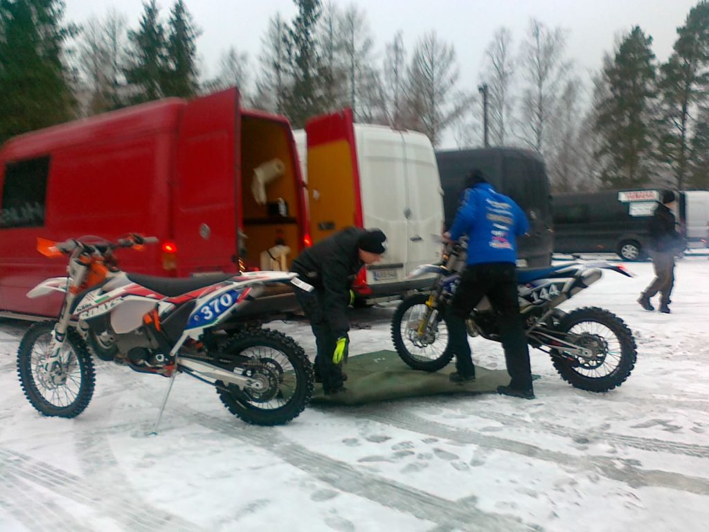 Kenen vuoro ajaa. Er*ki on ottanut oluen… Jotenkin näin alkoi kisamatka kohti Riihimäkeä 22.2 ajettavaan Motocenter enduroon. Mutta ennen kuin pääsimme matkaan, niin Matti huomasi, että siirtokilpi jäi hakematta. Onneksi Pajarisen Mikko tiesi mistä kilvet vielä saa kellon lyödessä 17:30 perjantaina. Matka kohti kilpailua meni perinteisesti eli ajettiin enduro ja tällä kertaa päitsi ainakin kahteen kertaan J.
