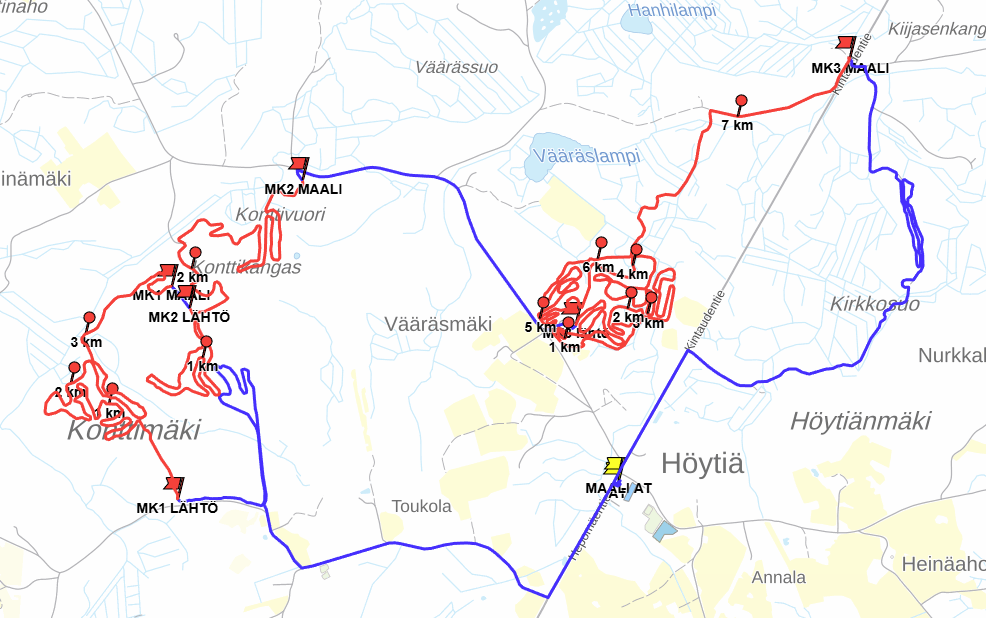 - Zoomailtava kartta reitteineen ja kisakeskus toimintoineen: https://kartta.paikkatietoikkuna.fi/published/fi/4b5e0572-2b10-470c-8156-e7b581b52db1